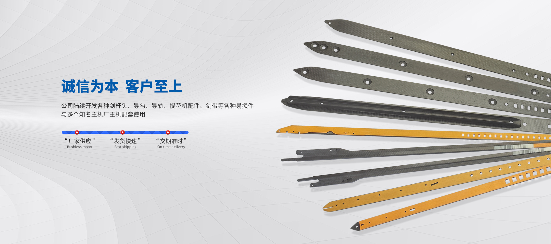 浙江巨劍紡織機械有限公司,是一家專業研制、開發和生產進口及國內劍桿織機配件的生產型企業。自2002年開始, 公司陸續開發各種劍桿頭、導勾、導軌、提花機配件、劍帶等各種易損件, 并獲得多項國家專利。巨劍擁有大量優秀的專業技術人才和研發團隊、管理團隊···